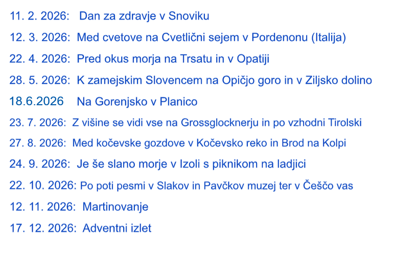 Organizator si v primeru izjemnih dogodkov ali okoliščin pridržuje pravico spremeniti program in datum izletov.